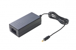 Desktop power supplies with AC input T3, input voltage 90-264V, output voltage 12V; 24V or 48V, power 50W or 65W, output current 1.35–5.42A. Connector 2.1x5.5, cable length 1.2m or 1.5m. Suitable power cord: IEC 320 C13 "PC cable".